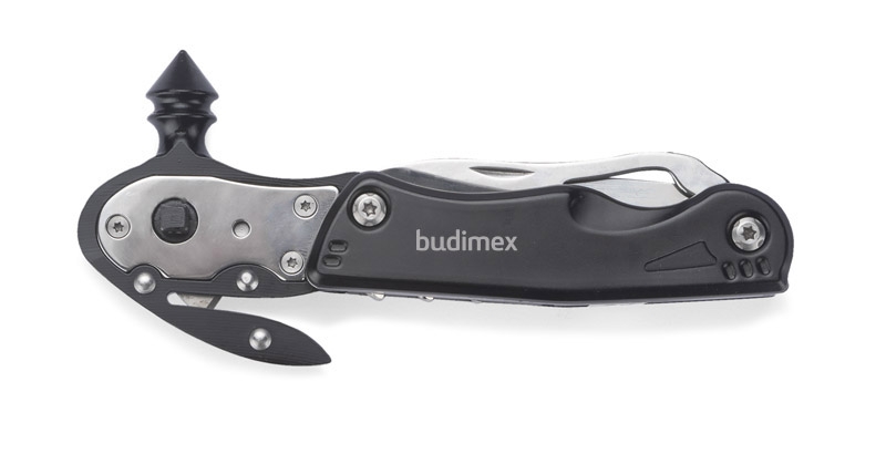 ESCAPE to niezbędne wyposażenie każdego samochodu, które warto mieć zawsze pod ręką. Zawiera aż 11 funkcji w jednym narzędziu z czego najważniejszymi są zbijak do szyb oraz przecinak do pasów bezpieczeństwa. Dodatkowo posiada takie funkcje jak: latarka, nóż, komplet 3 bitów, dwukierunkowy uchwyt na bity, uniwersalny klucz sześciokątny, płaski śrubokręt, piłę oraz otwieracz do butelek i puszek. W komplecie znajduje się również czarny, materiałowy pokrowiec na narzędzie.