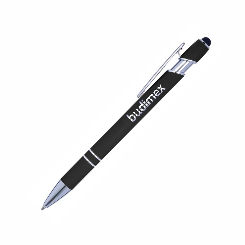 Długopis, touch pen, kolorowy gumowany trzon i srebrne elementy. Wymiar: Ø1,4 x 14,3 cm. Kolor wkładu: Niebieski