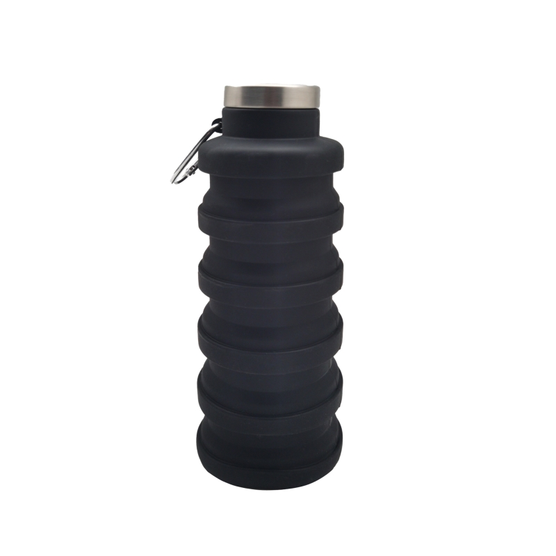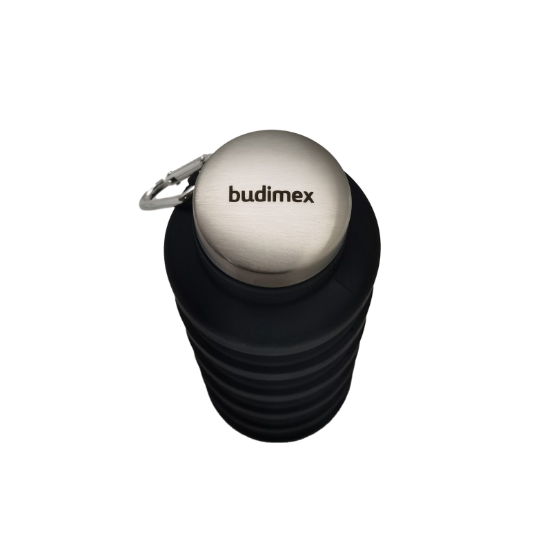 Składana silikonowa butelka z pokrywką ze stali nierdzewnej i z aluminiowym karabińczykiem. Karabińczyk nie jest przeznaczony do wspinaczki (nie do użytku profesjonalnego). Pojemność: 500 ml.